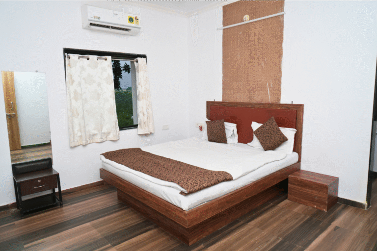 What sets our villas apart is the attention to comfort and privacy. You’ll enjoy the freedom to unwind in your own space while still having access to all the resort’s amenities, including the swimming pool, gardens, play zones, and in-house vegetarian restaurant. For guests who prefer personalized experiences, we also offer room service, bonfire arrangements, and rain dance setups.
